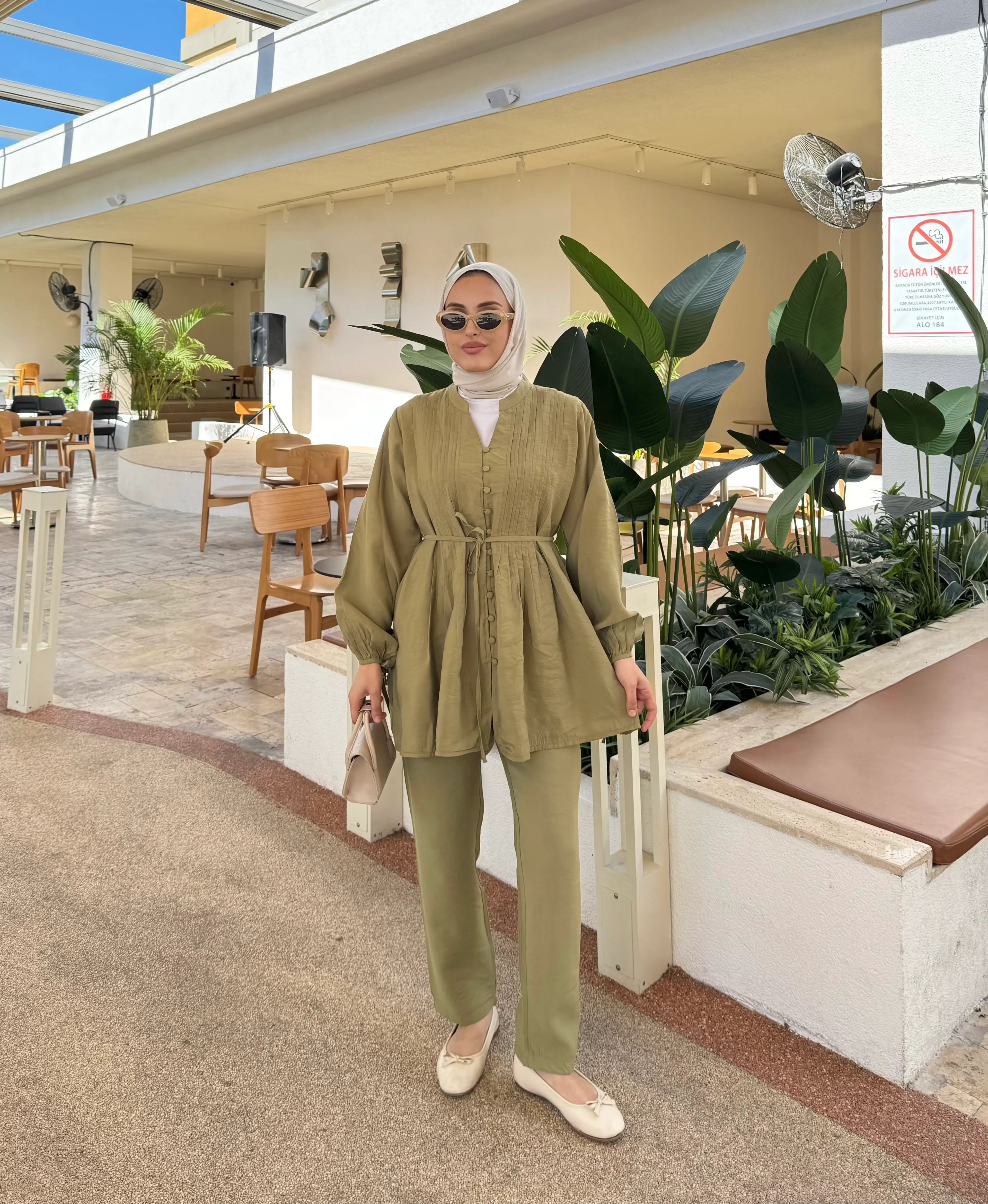 Üç İplik Fermuarlı Pantolonlu Takım Yeşil