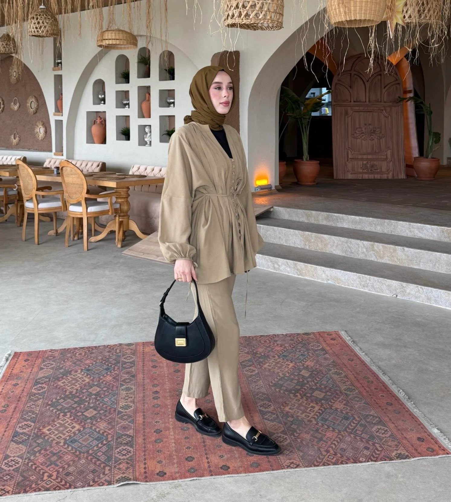 Üç İplik Fermuarlı Pantolonlu Takım Kahve
